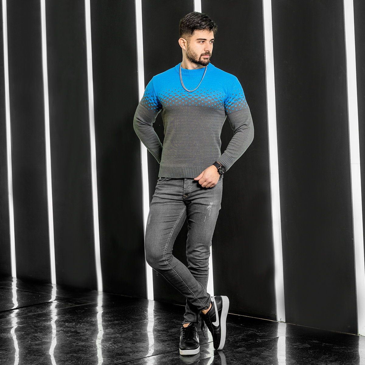 پلیور مشکی آبی مردانه مدلShatel