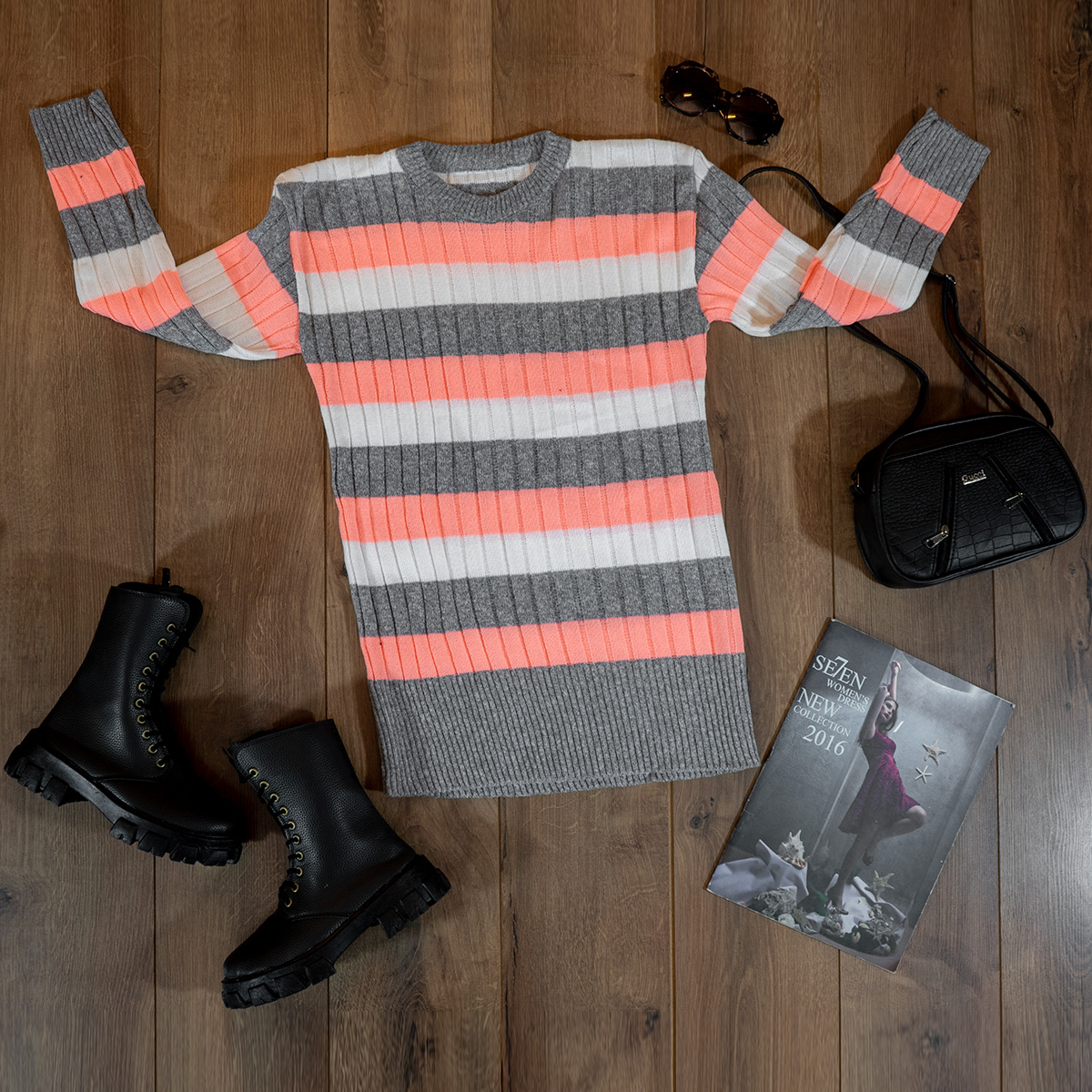 تونیک بافت زنانه راه راه طوسی صورتی مدل kareno