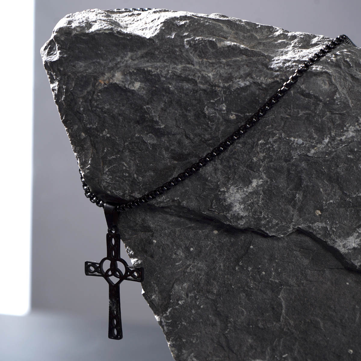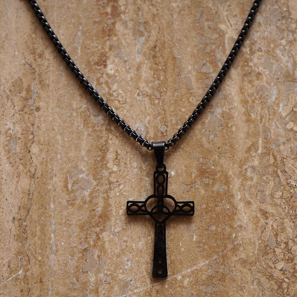 گردنبند مشکی طرح صلیب و قلب مدل SH