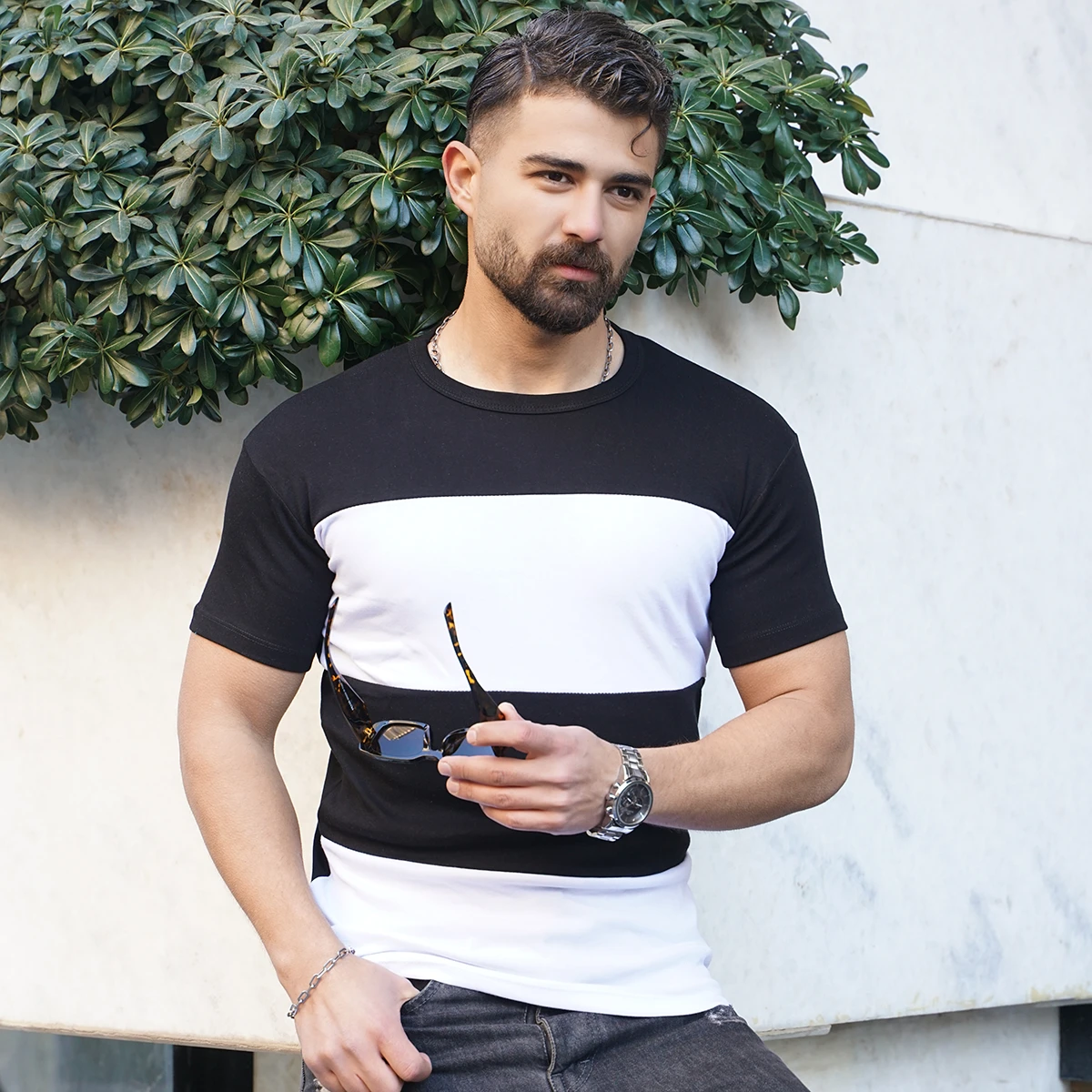 تیشرت مردانه مشکی سفید مدل Dayar