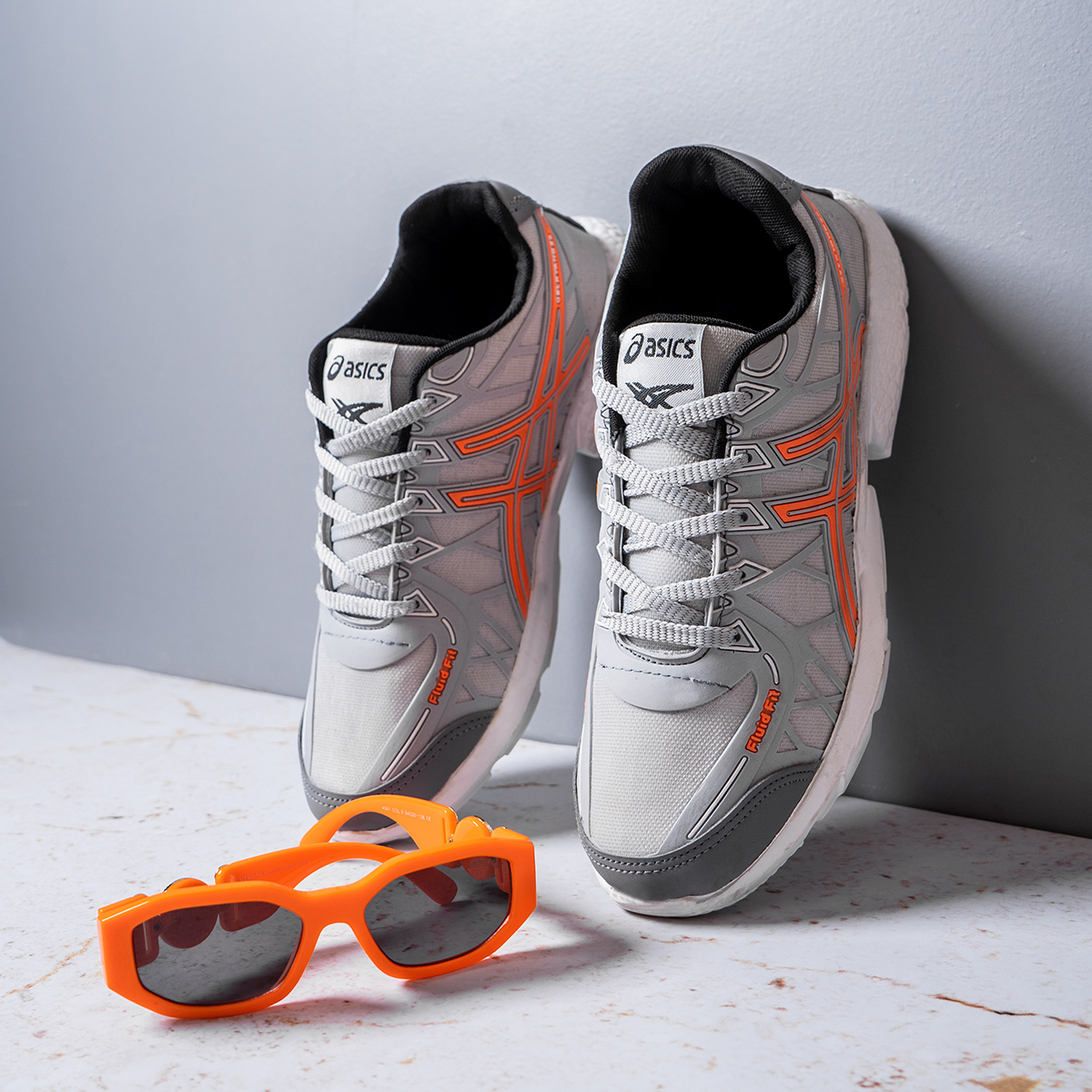 کفش ورزشی Asics مردانه طوسی نارنجی مدل Snopy